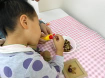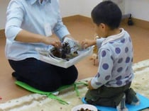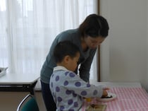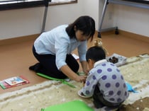 いつもは制作にあまり積極的ではないけれど、今回はお姉さん先生を独占できて、とても熱心に取り組んでいました。