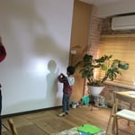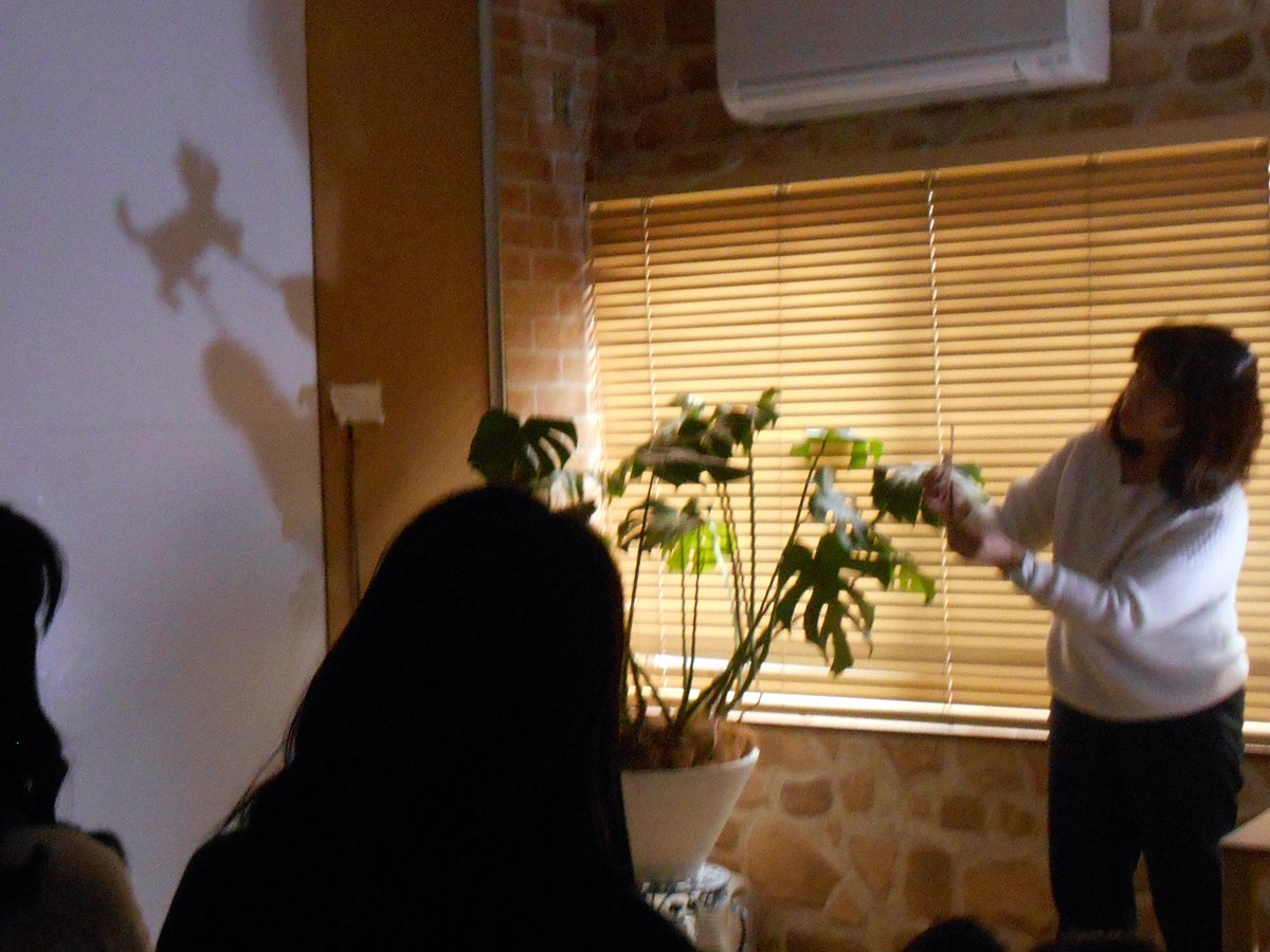 壁に近寄って小さな影を作ったり、離れて大きな影にしたり、思い切り光と影の世界を堪能しました。