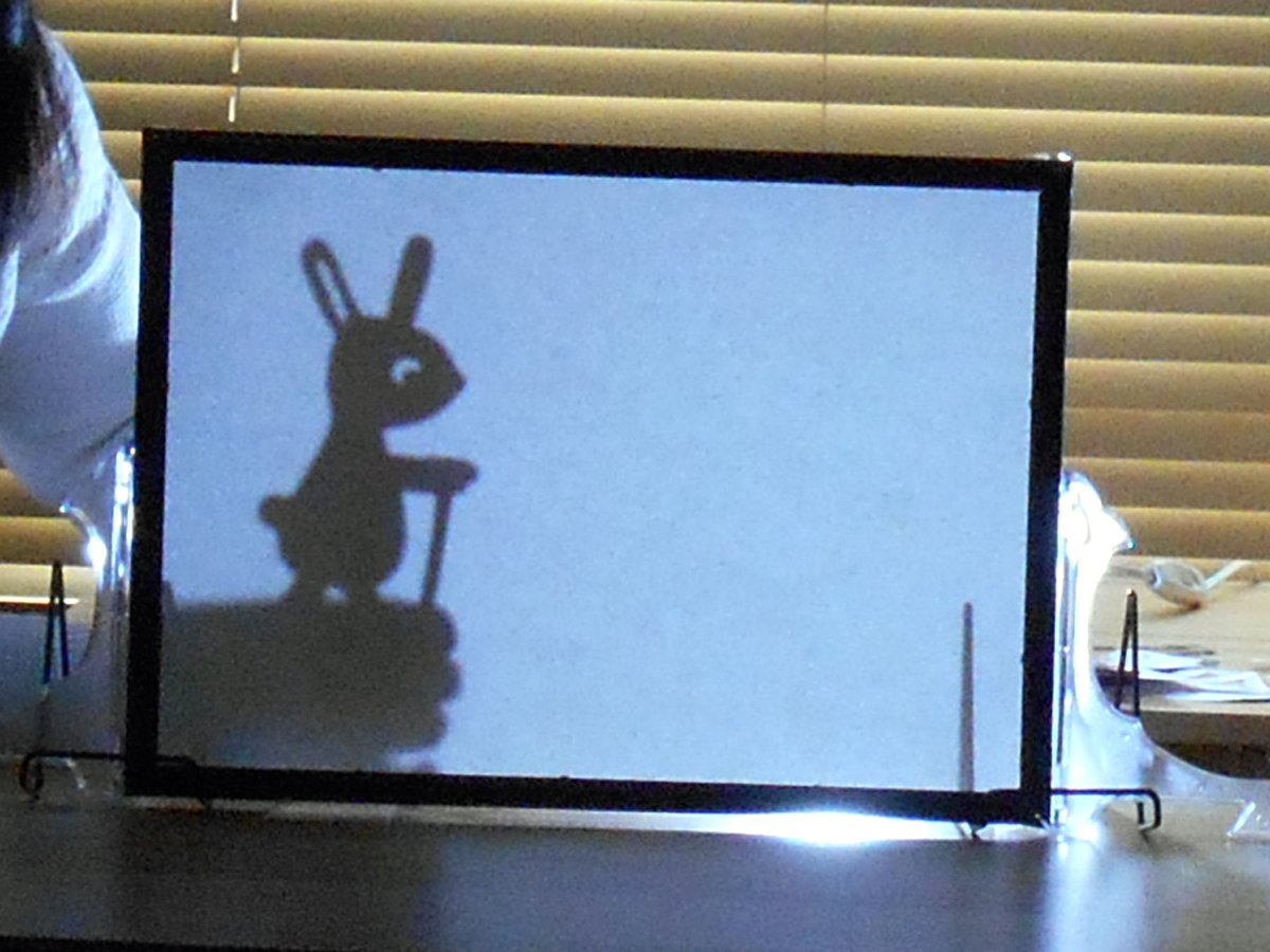 子どもの時間の「作って遊ぼう!」では、自分たちで作った動物を壁に投影して、大きくなったり小さくなったりする影の不思議さに夢中でした。