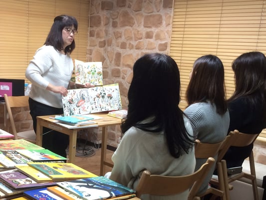 ちょうど0歳~1歳児の保育をされている赤松先生は、何度も何度も同じ本を読んでと言われる大変さと、それにどう応えるかのお話をされました。