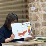 『どうながのプレッツェル』(福音館書店)その他の読み聞かせと共に、30冊以上のイヌの絵本をご紹介しました。