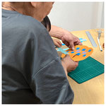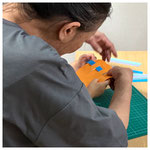 2歳なのに、好きな色の紙テープを選んで、すき間に通し、すてきな模様ができました。