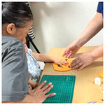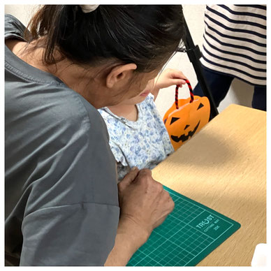 子どもと一緒に「作って遊ぼう!」では、ハロウィンのかぼちゃバッグを作りました。