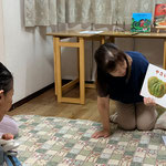 初めのうちはおばあちゃんの陰に隠れていたけれど、読み聞かせが始まると絵本に向き合って真剣に聞いてくれました。