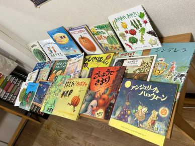 「読み聞かせってどうやるの?」というテーマで、ハロウィンのお話などもしながら、30冊以上のカボチャの絵本をご紹介しました。